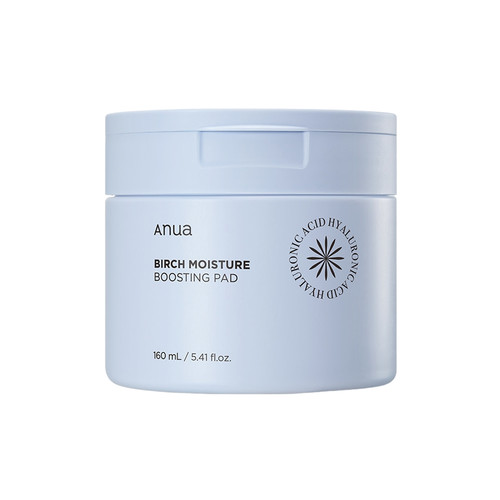 Anua Birch Moisture Boosting Pad with Japanese white birch water and hyaluronic acid. Deep hydration, sensitive skin care, clean beauty. Size 160 mL.