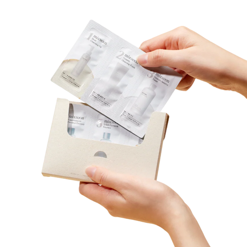 Mixsoon 9-Step Trial Kit includes all skincare essentials in convenient sachets. Benefits: perfect for travel, gifting, first-time users; hypoallergenic, cruelty-free.